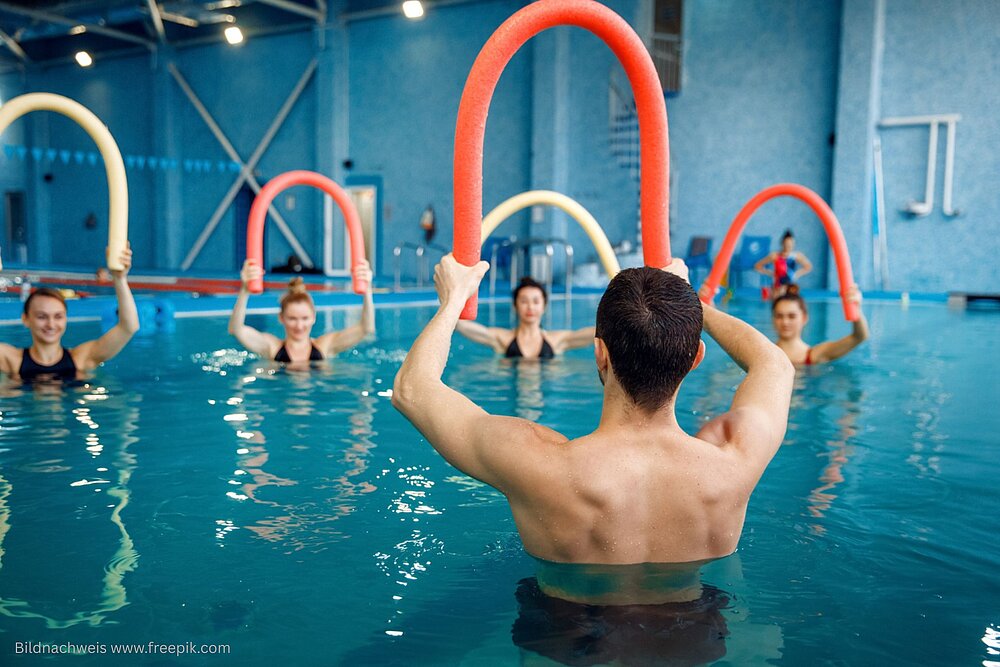 - Formen des Aquatrainings: Bewegung auf Musik (Aquaaerobic), Aquajogging, Wassergymnastik mit und ohne Kleingeräte